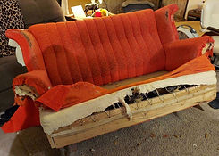 Antique sofa came in needing springs and webbing repaired. This sofa had no seat cushions and came in with 3 pieced of unshaped foam.