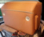 After: Many layers or red paint later the vintage radio is brought back to life with its antique wood restored.